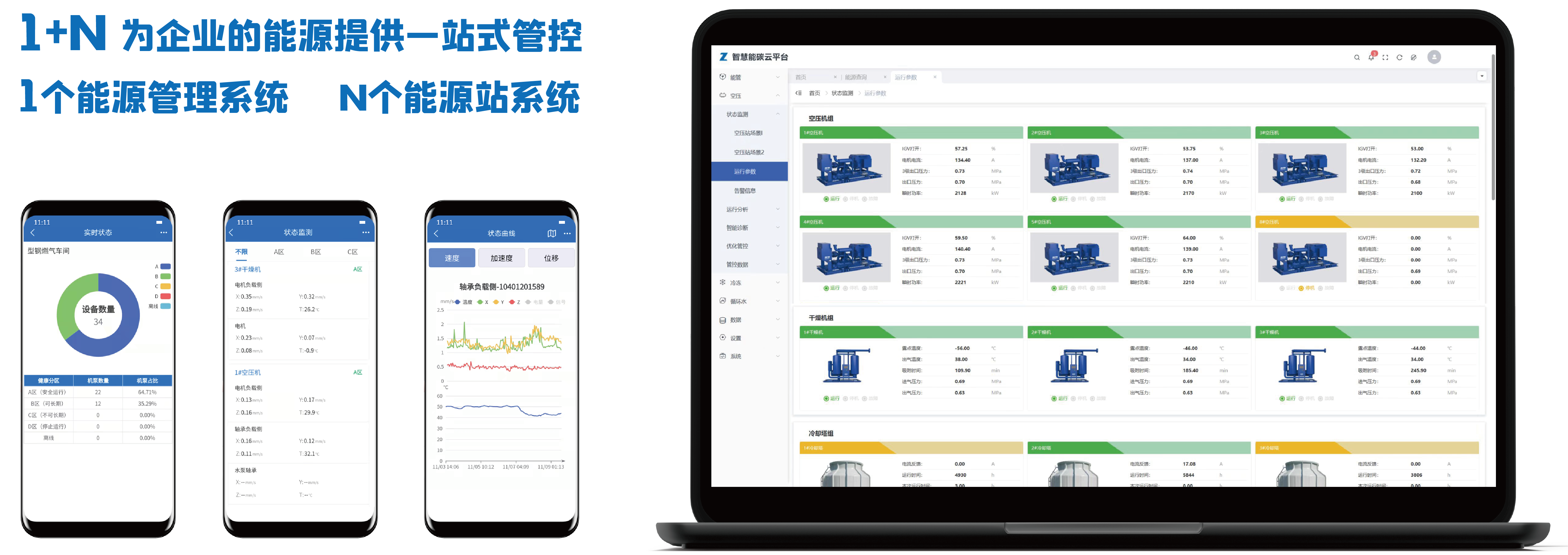 智慧能碳云是哲達節能三步法中的首個環節,致力于為企業提供能源數字化分析管控一站式服務。平臺采用1+N模塊化設計,即1套能管系統+N個能源站模塊(空壓站、冷凍站、循環水站……),從橫向和縱向兩大維度將企業能效管理與能源站數字化管控深度結合,實現用戶在能源管控過程中的管理節能和技術節能,為企業綠色低碳數智化轉型賦能助力。
